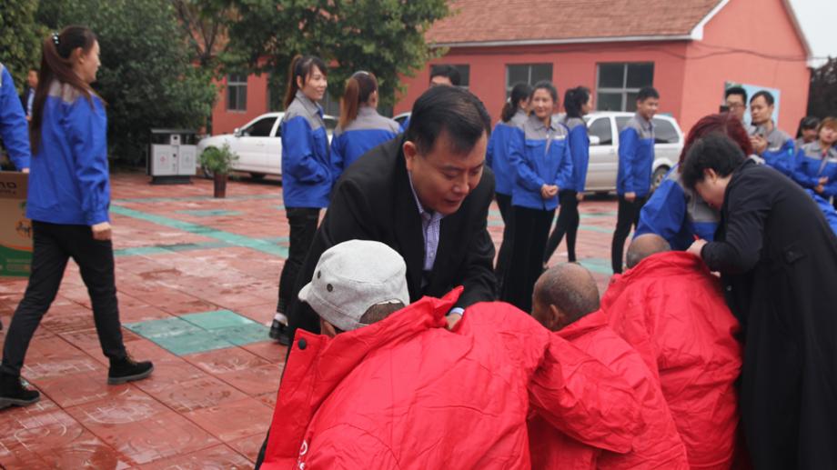 2019年10月7日,中国传统的重阳节来临之际,公司在张总的带领下,各部门领导、员工代表到龙阳镇、大坞镇、级索镇各地敬老院为孤寡老人送上一份心意,让老人们享受吉祥而温馨的重阳佳节。希望我们能用自己的实际行动带动人们关心老人,关爱老人,关怀老人,让爱能够广泛的传播,让爱的温暖沐浴每一位老人!