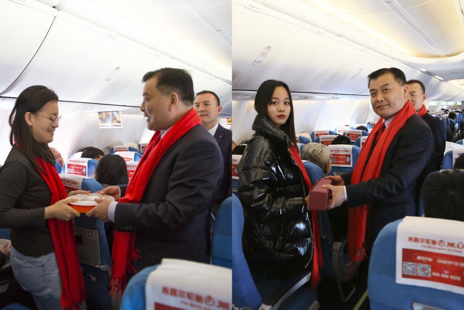 1月23日(腊月二十九),在厦门航空一架客运飞机上,吉路尔轮胎公司董事长张令纲先生,将特意准备好的飞机模型和水饺送到了返乡乘客的手中。