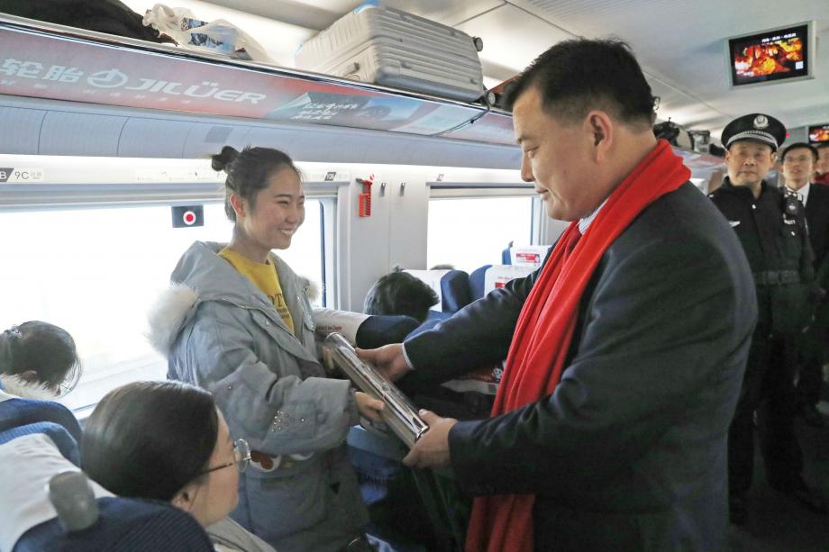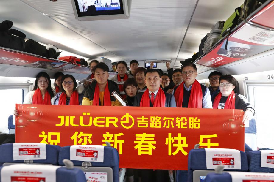 1月22日(腊月二十八),吉路尔轮胎公司董事长张令纲先生及公司高管一行,来到济南高铁站,为乘坐吉路尔轮胎冠名专列的乘客,送上高铁模型和代表着团圆幸福的水饺。