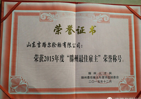 1998年4月,山东吉路尔公司轮胎有限公司被滕州市工商行政管理局评为A级企业